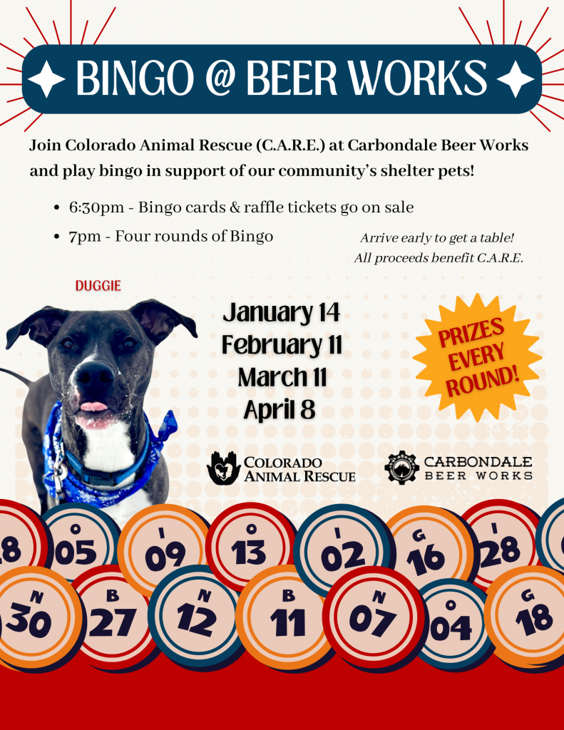 From October through April, C.A.R.E. will be BACK at Carbondale Beer Works for Bingo night!