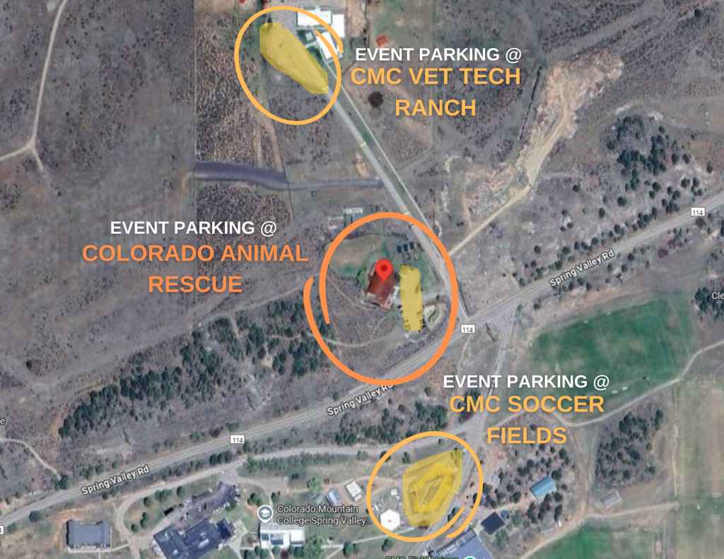 Please bring your own chair if you’d like to sit during the service. Parking is available at C.A.R.E., the CMC Vet Tech Ranch, and the CMC Soccer Fields (see map below).